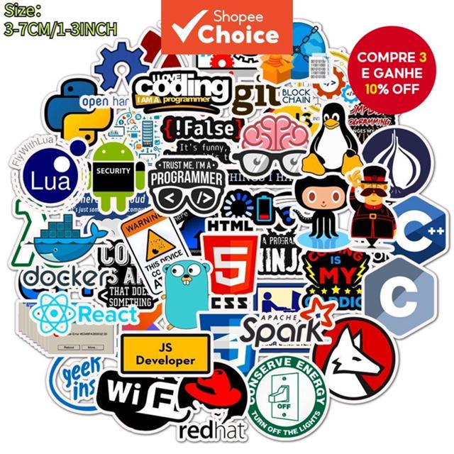 50 Unidades Programador Software Programação Série De Idiomas Graffiti Adesivos Para Malas Casos De Telefone Móvel