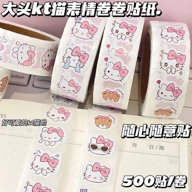 500 Adesivos De Rolo De Gato Fofo Fita Adesiva De Desenho Animado Autoadesiva Decoração De Conta Portátil De Vedação De