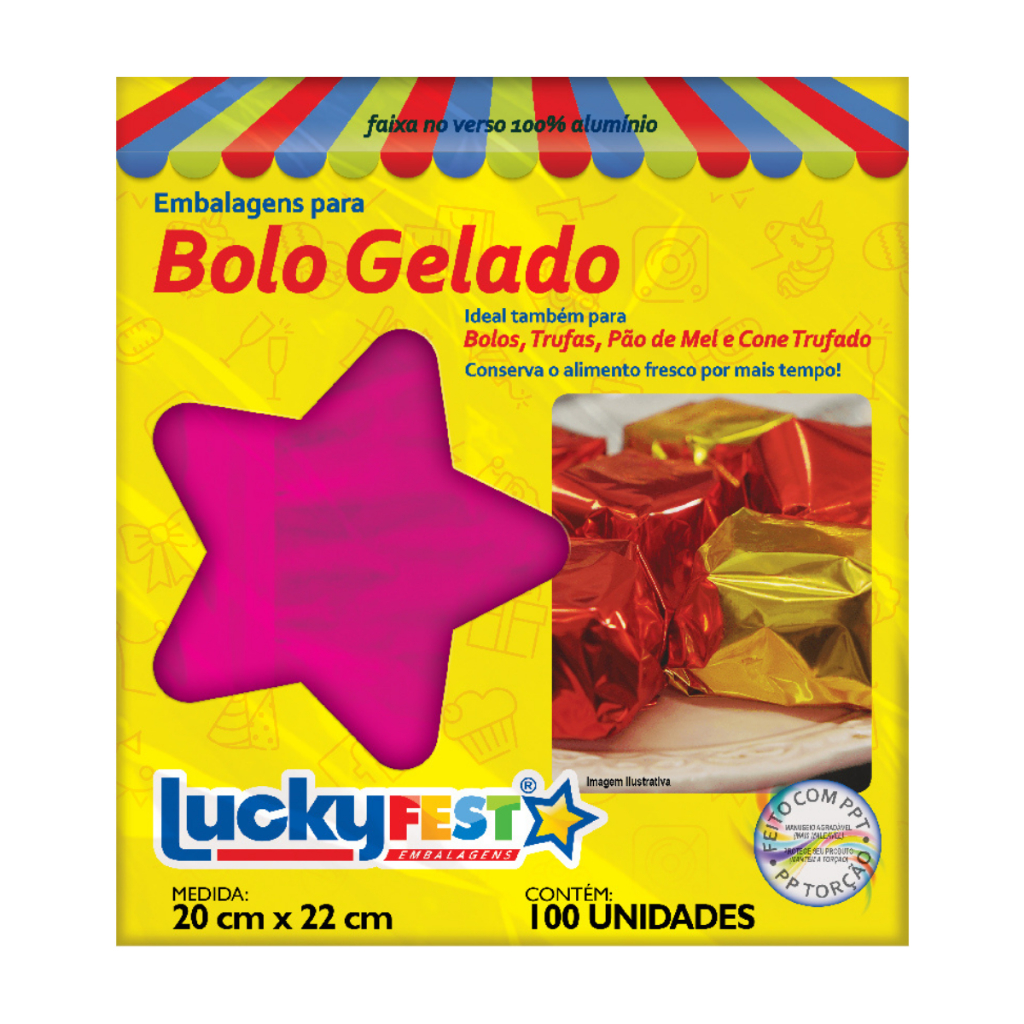 DESCRIÇÃO DO PRODUTO ***500 UNIDADES ( 5 Pacotes com 100 unidades)*** **VARIADO* ESCOLHER A COR NO MOMENTO DA COMPRA E ENVIAR MENSAGEM PARA NÃO OCORRER ERROS*** Embalagem para bolo gelado, Trufas, pão de mel gelado e Cone Trufado. Com material super resistente, não solta pedaços o que traz mais segurança na hora de consumir o produto. Feito com material PPT, garante maior torção. Próprio para embrulhar bolo de forma segura e prática, mais resistente que o alumínio normal, possui um filme protetor que impede que rasgue com facilidade e também possui filme protetor evita vazamento em casos de bolos bem molhados assim com apresentação muito mais sofisticada. Características: Material: Polipropileno + Alumínio + Pigmento Color Medidas aproximadas: Altura: 22cm Largura: 20cm Quantidade: 500 unidades Marca: Lucky Fest