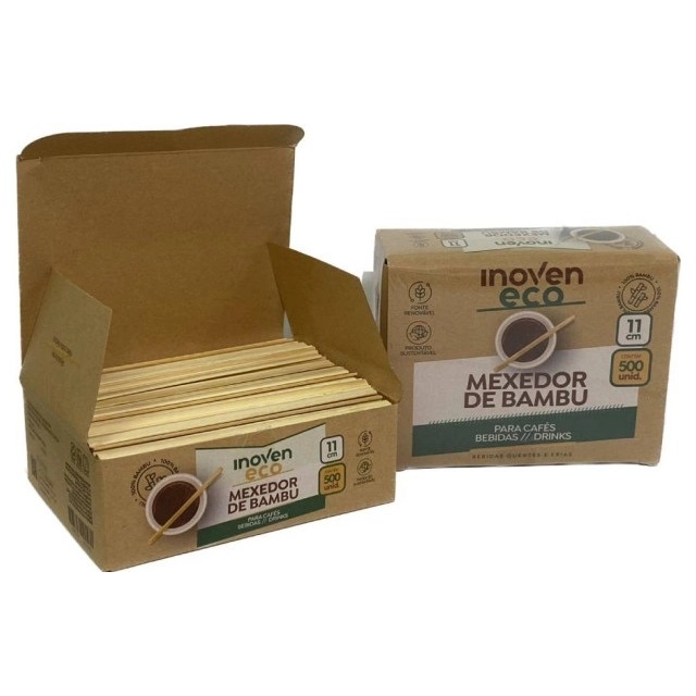 500 Mexedor de Bambu 11cm – Toque Natural em Suas Bebidas! Com opção embalados um a um.