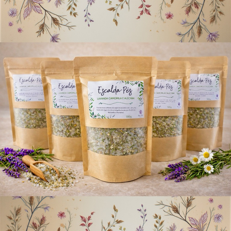500g Escada-Pés Artesanal Relaxante | Ervas Naturais | Autocuidado | Spa pés • Capim-Limão • Camomila • Alecrim