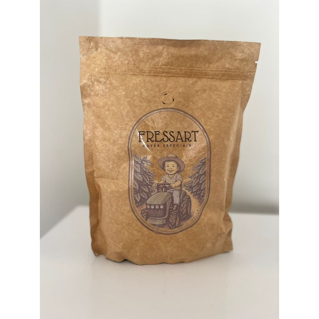 CAFÉ DE COLHEITA SELETIVA FRESSART - o Café Mineiro Italiano Café 86 pontos 500grs Tipo: Blend 100% Arábica Peneira: 16 e acima Classificação: Especial 86 pontos SCA Peso Líq: 500gr Nas montanhas do sul de Minas, o café floresce junto com as memórias de duas famílias de origem italiana que fizeram da terra o seu legado. Hoje, a FRESSART representa a continuidade desse ciclo. Um café mineiro-italiano que honra o passado e aposta no futuro — estampado no sorriso da nova geração, que já ama a terra. Cada xícara carrega mais que sabor: carrega um pedaço de herança, de esperança e de amor pelo que é nosso.