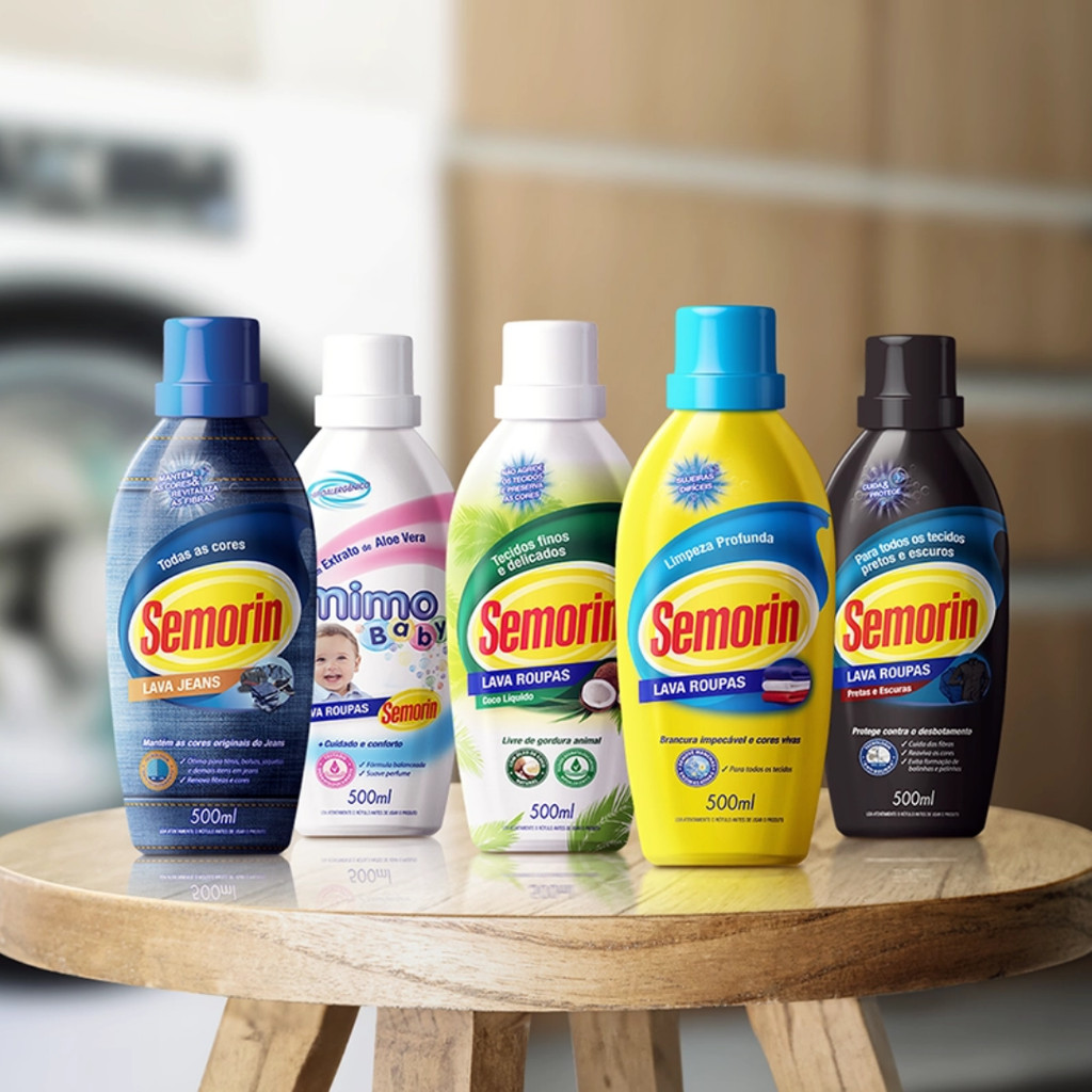 Descubra a Linha Completa de Lava Roupas Líquidos Semorin - Cuidado e Eficiência para Todas as Suas Roupas Transforme a forma como você cuida das suas roupas com a linha completa de Lava Roupas Líquidos Semorin. Desenvolvidos com fórmulas avançadas e ingredientes especiais, nossos produtos garantem limpeza profunda, proteção das cores e cuidado com os tecidos, atendendo a todas as suas necessidades de lavagem. 🌟Nossos Produtos: 🟡Semorin Lava Roupas Tradicional: Desempenho Superior: Desenvolvido para limpar profundamente e evitar desgastes, reavivando e mantendo as cores dos tecidos. Limpeza Profunda: Remove sujeiras difíceis, deixando um perfume agradável nas roupas. Enzimas Ativas: Eficazes na remoção de manchas. Para Todos os Tecidos: Seguro para usar em todos os tipos de tecido. ⚫ Semorin Lava Roupas Pretas e Escuras: Proteção Contra Desbotamento: Mantém as cores escuras vibrantes e evita a formação de bolinhas e pelinhos. Cuida das Fibras: Mantém a integridade dos tecidos pretos e escuros. Reaviva as Cores: Deixa suas roupas escuras sempre com aparência de novas. 🔵 Semorin Lava Jeans: Mantém as Cores Originais: Preserva as cores do jeans, evitando desbotamento. Revitaliza as Fibras: Cuida das fibras do tecido, indicado para roupas, tênis, bolsas e jaquetas em jeans. Limpeza Eficiente: Ideal para jeans de todas as cores. 🟣 Mimo Bebês Lava Roupas: Formulação Suave: Limpa sem danificar os tecidos ou as cores, deixando um suave perfume de limpeza. Extrato de Aloe Vera: Proporciona cuidado e conforto adicionais para suas roupas. Hipoalergênico e Sem Corantes: Seguro para peles sensíveis e para quem busca uma opção mais natural. 🟢Coco Lava Roupas: Natural: Produto com óleo de coco e livre de gordura animal Hipoalergênico e Sem Corantes: Seguro para peles sensíveis e para quem busca uma opção mais natural. 🧾Instruções de Uso Comuns: Pré-uso: Para manchas ou sujeiras difíceis, aplique o Lava Roupas Semorin diretamente na mancha. Deixe agir por alguns minutos e enxágue em seguida, evitando que o produto seque no tecido. Máquina (45L): Selecione o nível médio de água fria. Dilua 2 tampas do produto diretamente na máquina com água ou use o dispenser da máquina. Máquina (60L): Selecione o nível alto de água fria. Dilua 3 tampas do produto da mesma forma descrita acima. Tanque: Adicione 1 tampa do produto em 15 litros de água fria. Mergulhe as peças uma a uma, esfregue suavemente e enxágue normalmente. ⚙Informações Técnicas Quantidade: 500ml Modelos: Tradicional, Roupas Pretas/Escuras, Jeans, Coco e Bebes. Experimente a linha completa de Lava Roupas Líquidos Semorin e descubra a diferença que o cuidado especializado pode fazer na limpeza e manutenção das suas roupas. Mantenha suas peças sempre novas, cheirosas e bem cuidadas!