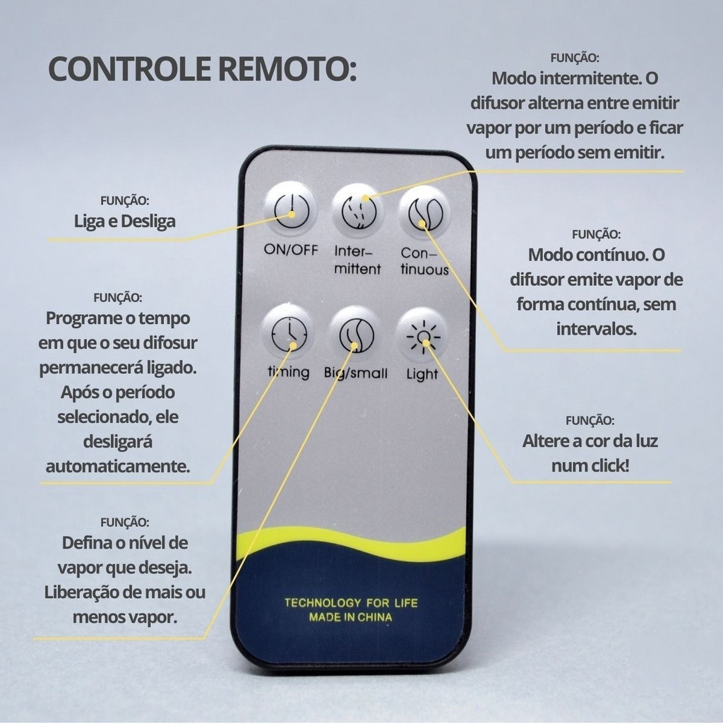 500ML Umidificador Difusor Aromatizador Ultrassônico Estilo Led 7 cores com controle
