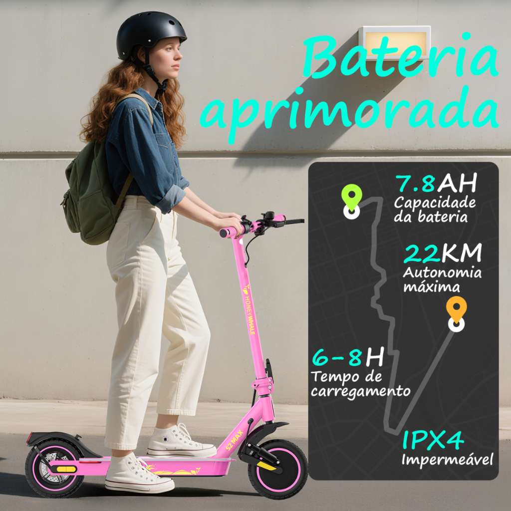 500W de Potência Robusta: O patinete elétrico HONEYWHALE S2 MAX vem equipado com um motor potente de 500W, atingindo facilmente a velocidade máxima de 32KM/H e enfrentando inclinações de até 15° sem esforço. O design de tração dianteira oferece excelente aderência, aceleração rápida e controle preciso. Seja para deslocamentos urbanos ou passeios de lazer, ele garante uma condução fluida. Com a bateria de 7.8AH, uma única carga proporciona até 22KM de autonomia confiável, atendendo às suas necessidades diárias de mobilidade. Conectividade Inteligente ao Seu Alcance: O patinete conta com uma tela LCD clara, exibindo em tempo real velocidade, modos e status do controle de cruzeiro. Através do APP exclusivo conectado ao smartphone, você desbloqueia diversas funções inteligentes: travar/destravar, alternar modos, controle de cruzeiro com um clique e muito mais. Acompanha um suporte para celular, tornando a navegação ainda mais prática. Dupla Absorção de Impacto: O sistema de suspensão por mola dianteira do S2 MAX garante conforto mesmo em calçadas irregulares, estradas de cascalho ou ruas esburacadas. Em conjunto com os pneus infláveis de alta elasticidade de 10 polegadas, cria um duplo mecanismo de amortecimento, oferecendo 35% mais eficiência de absorção de impacto em comparação com pneus sólidos. Segurança Dia e Noite: Equipado com setas para garantir sinais de direção claros, além de luzes de LED no deck que aumentam a visibilidade noturna e adicionam estilo ao design. O farol dianteiro superbrilhante e a lanterna traseira de advertência asseguram visibilidade em qualquer condição. Design Leve e Portátil: Construído com estrutura de liga de alumínio resistente, suporta até 120KG, garantindo durabilidade. O design inovador de dobra permite ser recolhido em apenas duas etapas (em até 3 segundos!), facilitando o armazenamento no porta-malas do carro ou em pequenos espaços dentro de casa. Compacto e prático, acompanha você sem esforço.