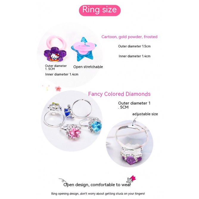 50pcs Anéis/37Pcs Conjunto Frozen aisha Anna Jewelry Cute cat Ajustáveis Para Crianças De Presente Com Caixa Aleatória