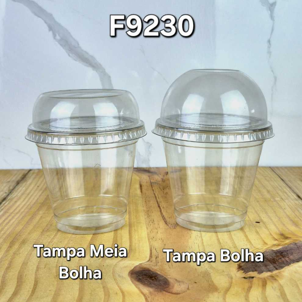 50un Copo 300ml c/Tampa Bolha ou Meia Bolha e Reta Sem Furo Resistentes F9230 Fibraform