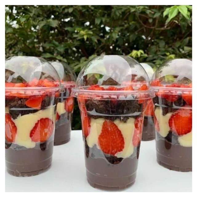 50Un Copo Tampa Bolha Furo Embalagem Festa Doce 330ml Doces Sobremesa Gourmet Pote da Felicidade