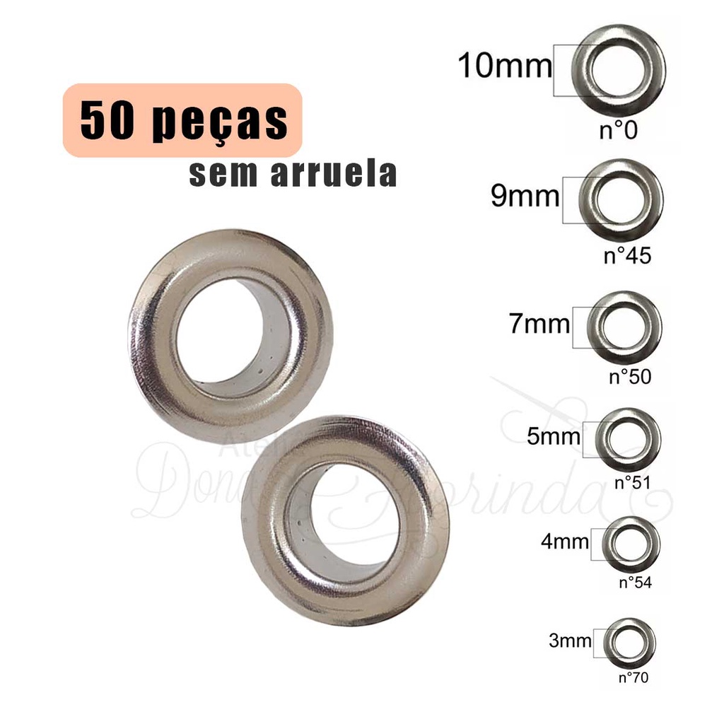 50unid Ilhós ***SEM ARRUELA*** Níquel Nº 0 - 45 - 50 - 51 - 54 - 70