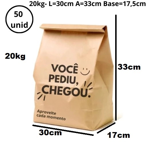 50unidade Saco Delivery Kraft Você Pediu Chegou Tam Pp/p/m/g/gg/Xg - Reforçado