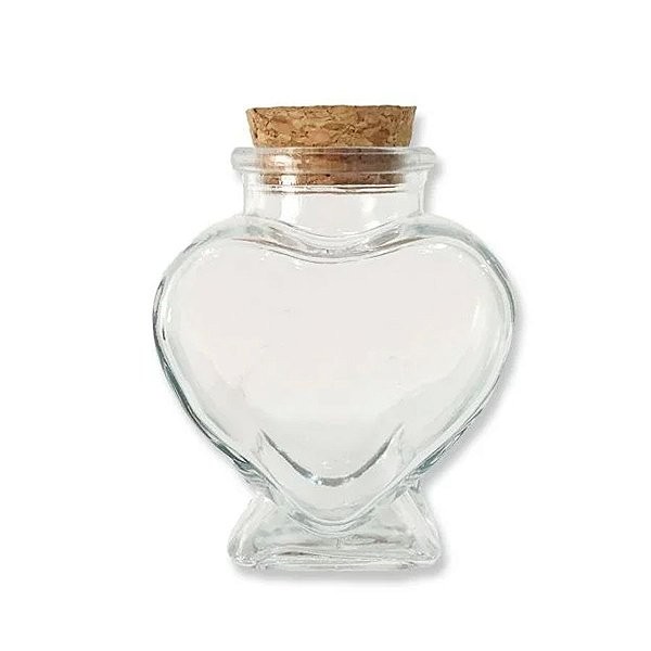 55 Potinho de Vidro Coração com Rolha 70ml - 6cm x 7cm - Rizzo Embalagens