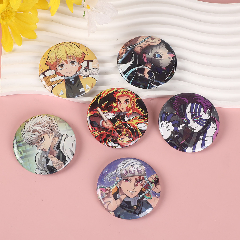 58mm Broches Demon Slayer Holográfico/Nezuko/Shinobu/Mitsuri/Tokito/Inosuke/Zenitsu/bottons/Crachás/Crachas/goods/anime