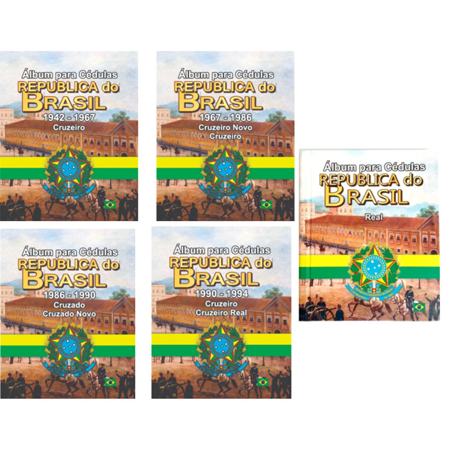 5x Álbuns para Cédulas República do Brasil desde 1942 até Real