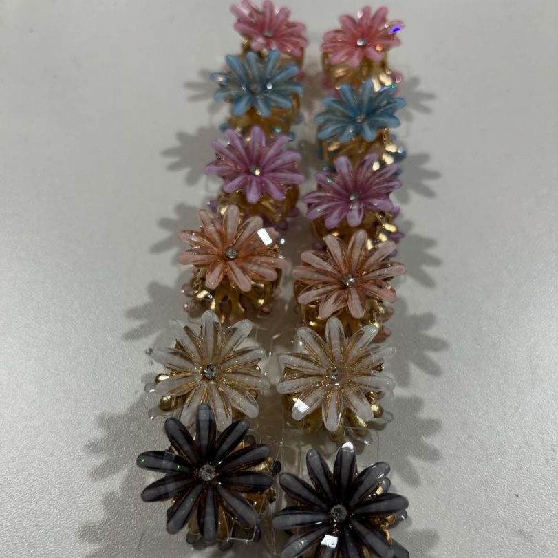 6 Ate 12 Unidades Grampo de cabelo pequeno com flor de strass/grampo de menina, acessório de cabelo