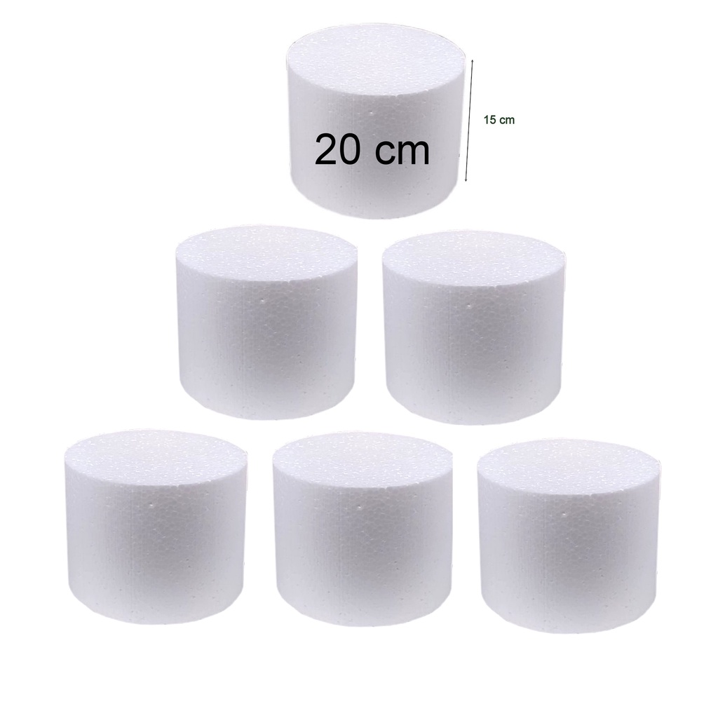 6 bases redondas de Isopor EPS para bolo fake maciça com 20 cm de largura x 15 cm de altura. Ideal para ser utilizada em confeitaria ou artesanato para fazer a montagem e decoração de bolo fake ou também como é conhecido como bolo cenográfico. Usado como composição da decoração da mesa principal para festas de aniversários e infantis, casamentos, festas de noivado, chá de bebê ou revelação. Pode ser decorado com vários materiais como: biscuit, porcelana fria, pasta americana, EVA, entre outros. Também pode servir de base para os mais diversos artesanatos. Características: Largura: 20 cm Altura: 15 cm Material: Isopor maciço Conteúdo: 6 unidades