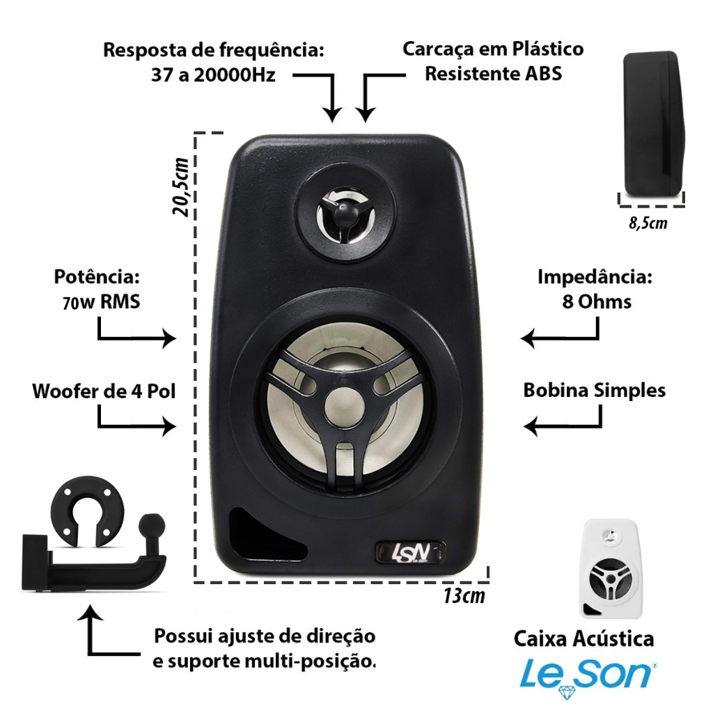6 Caixa Som Acustica Preta Suporte Som Ambiente 70w Leson