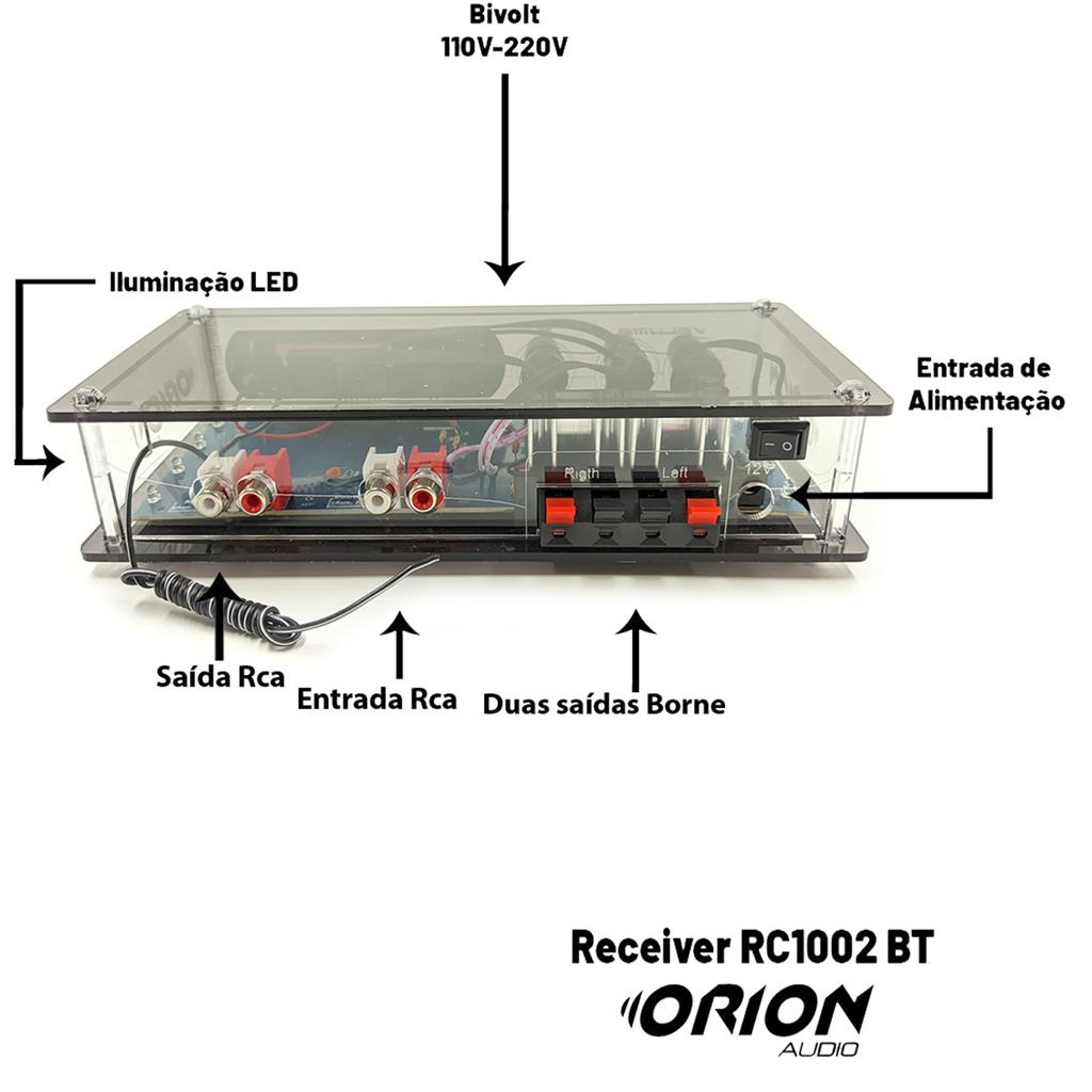 Mais de 15 anos de experiencia no mercado com os melhores produtos e o melhor atendimento! Kit Amplificador Receiver 40W Som Ambiente Orion Bluetooth Usb Micro SD Auxiliar Rca Fm 2 Canais de 20W + 06 Caixas de Som Arandelas de Embutir Teto 5 polegadas Redondas Pretas 55W 8 Ohms + Suportes de Fixacao Compativel com ALEXA e GOOGLE ASSISTENTE Amplificador para som ambiente Bluetooth USB/FM/SD/Auxiliar compacto para uso geral, desenvolvido pela Orion, com alto desempenho e qualidade de reproducao para todas as faixas de frequencia de audio. Possui controles de volume, entrada auxiliar. Ideal para completar qualquer projeto de som, seja em salas , hoteis, bares, lojas, consultorios, escritorios, clinicas ,etc. Voce pode ouvir suas musicas com muito mais qualidade. Esse amplificador tem 40 Watts de potencia maxima e conta com tensao bivolt para voce instalar com facilidade e garantir a execucao do som com mais qualidade. Ele conta com conexao USB, SD, RCA, FM, Entrada auxiliar e Bluetooth. Acompanha Controle remoto para trazer a comodidade de controlar seu som a distancia. Possui 2 saidas que suportam ate 8 alto-falantes (consultar manual de instalacao para realizar a ligacao correta) Especificacoes Tecnicas: - 2 Canais de 20W RMS - Ajuste de Volume Independente para saida dos Alto Falantes - Led Indicador de Funcionamento - Saidas com Conectores tipo Borne de Pressao - Entrada RCA - Entrada USB /Micro SD Card /FM /Bluetooth / Auxiliar P2 - Impedancia: 2 a 8 Ohms - 2 Canais - Bivolt Automatico (110v/220v); - Potencia Maxima 40 Watts; - Altura 5 CM - Largura 22,5 CM - Profundidade 10 CM - Peso 400g; Caixas de Som Arandelas de Embutir Teto 5 polegadas Redondas Pretas 55W 8 Ohms A Arandela para som ambiente de 5 polegadas Orion e discreta e elegante, possui bordas arredondadas, o que proporciona um acabamento moderno e elegante, alem de integrar perfeitamente a arandela ao ambiente. O alto-falante de 5 Polegadas 55W 8 Ohms proporciona um som ambiente agradavel, possui um sistema de suportes para facilitar a instalacao. Ideal para instalar no teto de Gesso, Pvc, Sanca, Madeira, Salas, Escritorios, Quartos, Recepcao, etc. Especificacoes: Faixa de Frequencia: 48 HZa 10.000Hz Impedancia Nominal: 8 ohms Potencia musical: 55 Wrms Sensibilidade: 84dB Carcaca em ABS Bobina Simples Diametro Nominal: 15 cm Dimensoes internas: 13,6 cm Altura:6,5 cm Peso: 378g (cada) Conteudo do kit: 01 - Amplificador 01 - Fonte Bivolt 01 - Controle remoto 01 - Manual 06 - Caixas de Som de embutir + suporte de fixacao