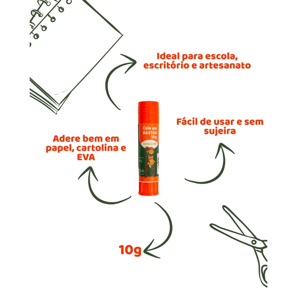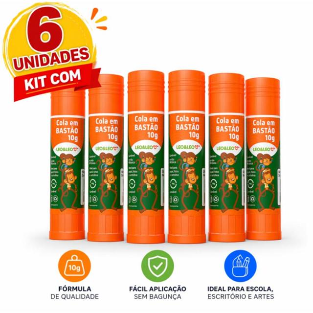 | Kit 6 Colas em Bastão Escolar 10g Escritório Artesanato Leo&Leo | R$ 9,99 | 44% | 4.8/5 | 71 |