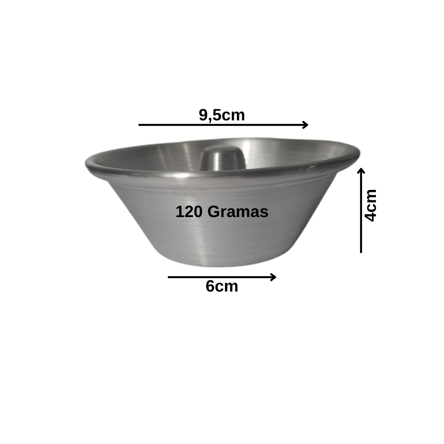 Forminhas Mini Pudim 6×4 – 120 gramas Forma tipo mini pudim e bolo vulcão em alumínio 6 peças MEDIDAS: 9 (boca) X 4 CM (altura) X 6 CM (fundo) CAPACIDADE: Aproximadamente 120 gramas