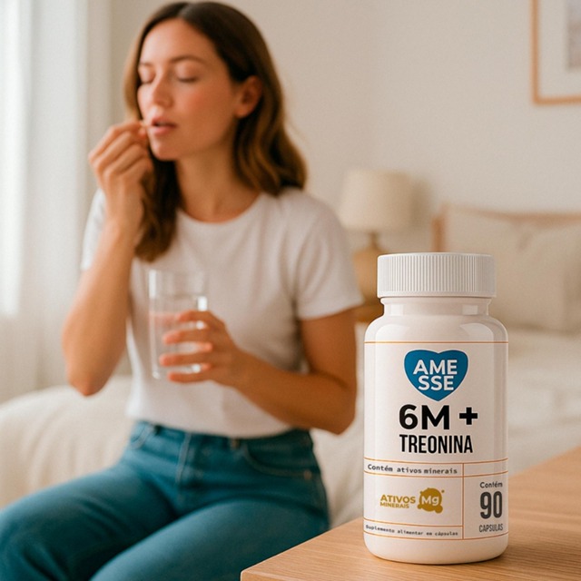 Conheça o 6M Magnésio - 6 fontes de Magnésio e Treonina Com o 6M, você tem a chave para liberar o potencial extraordinário que está em seu interior. Uma fórmula única e poderosa, cuidadosamente elaborada com 6 tipos de magnésio de alta qualidade mais L-treonina, que faz o 6M se tornar compatível com magnésio Treonato Descubra os benefícios da L- Treonina e de cada tipo de magnésio: • L-treonina é um aminoácido essencial que promove a síntese de neurotransmissores importantes para a função cerebral saudável, melhorando o foco e concentração • Óxido de Magnésio:Auxilia no metabolismo energético • Bisglicinato de Magnésio:Auxilia no equilíbrio de eletrólitos • Taurato de Magnésio: Auxilia no funcionamento neuromuscular • Hidróxido de Magnésio:Auxilia no metabolismo de proteinas, carboidratos e gorduras • Dimalato de Magnésio:Auxilia no funcionamento muscular • Cloreto de Magnésio:Auxilia no processo de divisão celular Atenção: Por conter a treonina o 6M é compatível com magnésio Treonato Recomendação de uso: Ingerir 3 cápsulas ao dia. OBS:o suplemento 6M é livre de glúten, lactose e açúcar. Lembre-se: O 6M é um complemento alimentar e deve ser utilizado em conjunto com uma dieta equilibrada e hábitos de vida saudáveis.