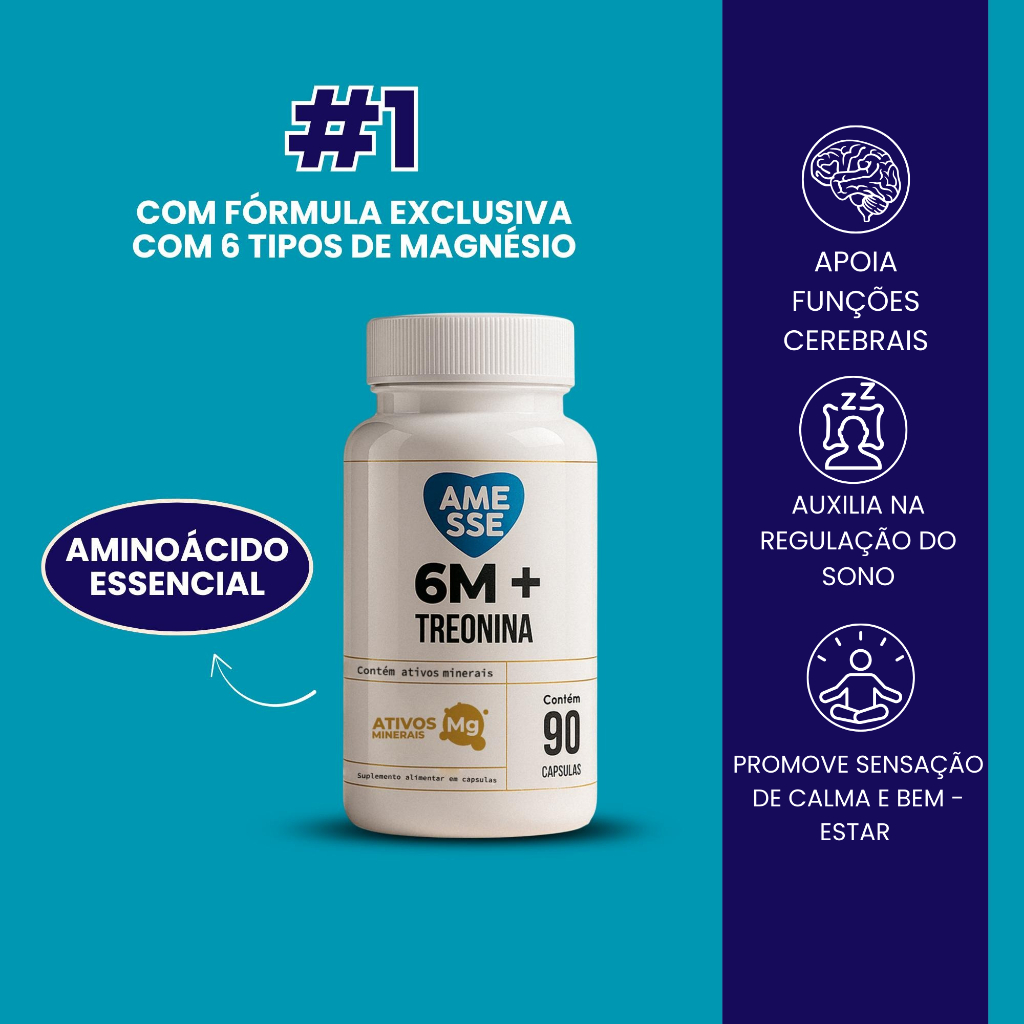 6 MAGNESIOS + TREONINA Amesse 90 Capsulas - 6M