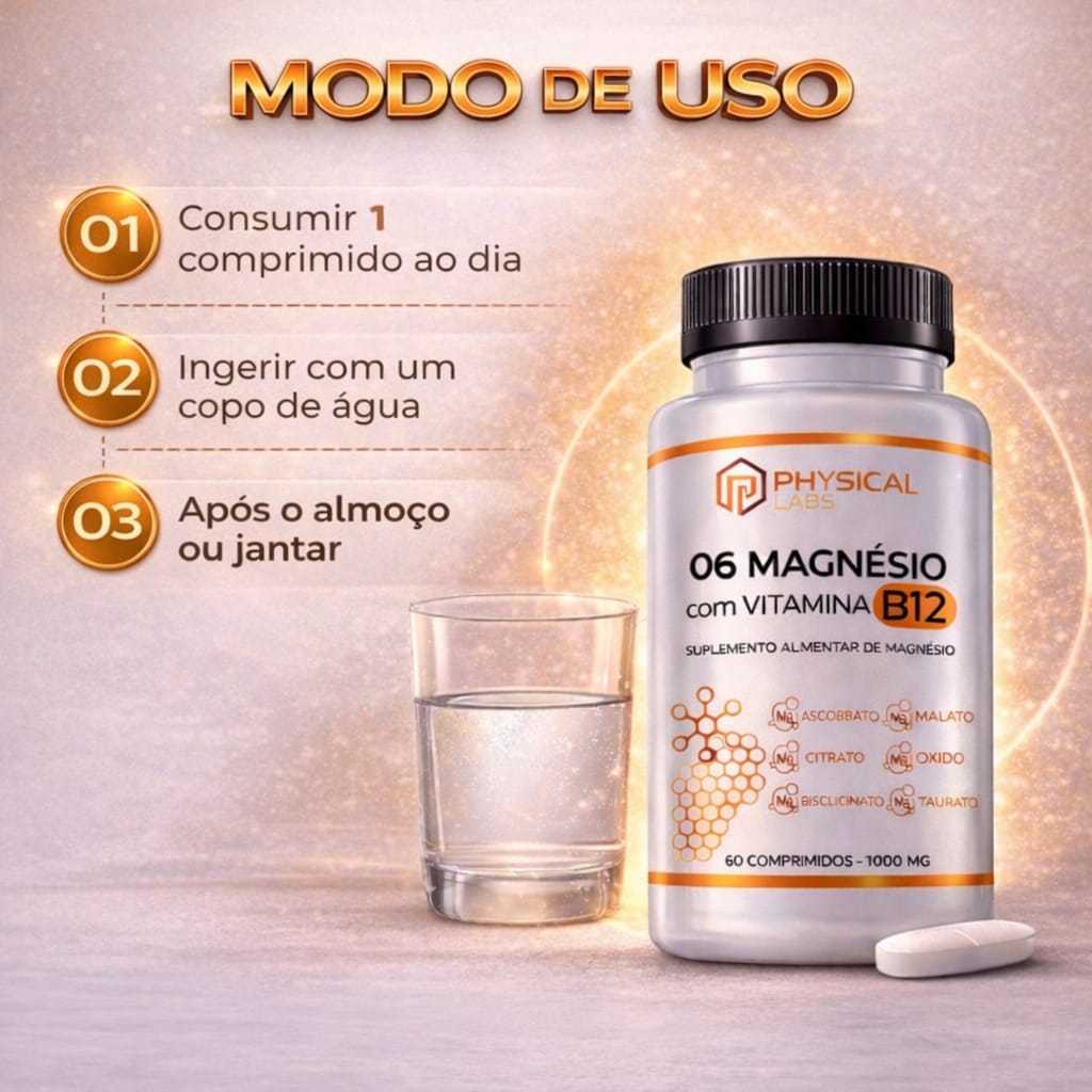 6 Magnésios + Vitamina B12 Physical Labs 60 Comprimidos | Suplemento - POTE 2 MESES