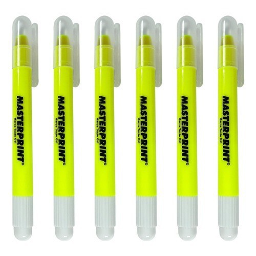 6 Marca Texto Gel Amarelo Masterprint 6 Unidades Caneta Escolar