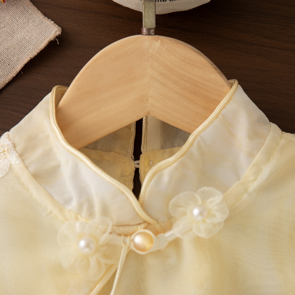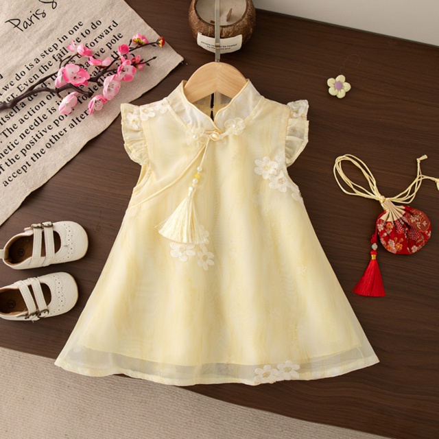 6 Meses-3 Anos De Idade Verão Novo Estilo De Vestido Fresco Para Meninas , Bordado De Flores Roupas Infantis Com Pingent