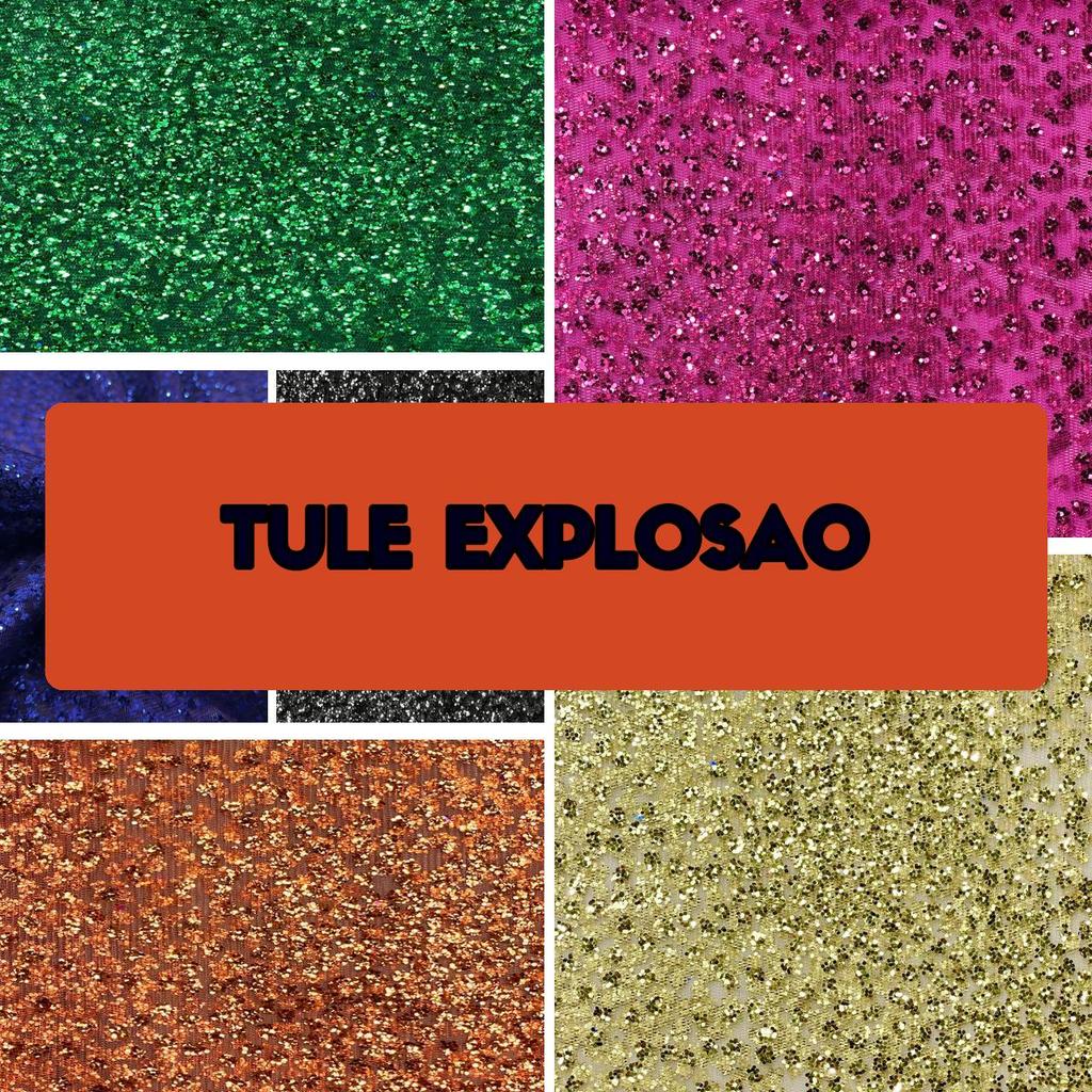 6 Metros Tecido Tule Explosao de Glitter Flocado de Poliamida (6m x 1.50m)