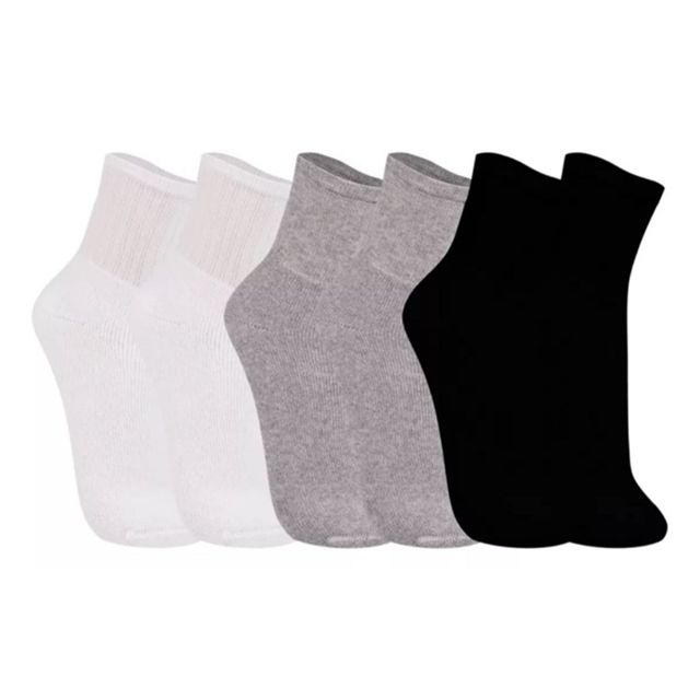 Kit com 6 pares meias esportivas cano médio Trifil: Uma combinação de conforto, funcionalidade e estilo para o dia a dia. Feitas com algodão macio, essas meias são perfeitas para atividades como esportes, caminhadas ou uso escolar. Seu design unissex com cano médio e punho canelado oferece um ajuste confortável e seguro, além de serem respiráveis e ideais para manter os pés secos e confortáveis ao longo do dia. Características: Confeccionadas em Algodão Macio: Tecido confortável e respirável que proporciona suavidade ao toque. Modelo Cano Médio: Com punho canelado que garante ajuste firme e confortável. Calcanhar Verdadeiro: Para ajuste anatômico perfeito e estabilidade durante o uso. Unissex: Disponível em tamanhos abrangentes para masculino e feminino. Versatilidade: Perfeitas para esportes, caminhadas ou uso escolar diário. Itens: Kit com 6 pares de meias esportivas. Composição: Cinza Mescla: 70% Algodão, 19% Poliamida, 10% Poliéster, 1% Elastano. Demais Cores: 80% Algodão, 19% Poliamida, 1% Elastano. Cores Disponíveis: Branco Preto Cinza Sortido Tamanhos Disponíveis: 35/38 39/43