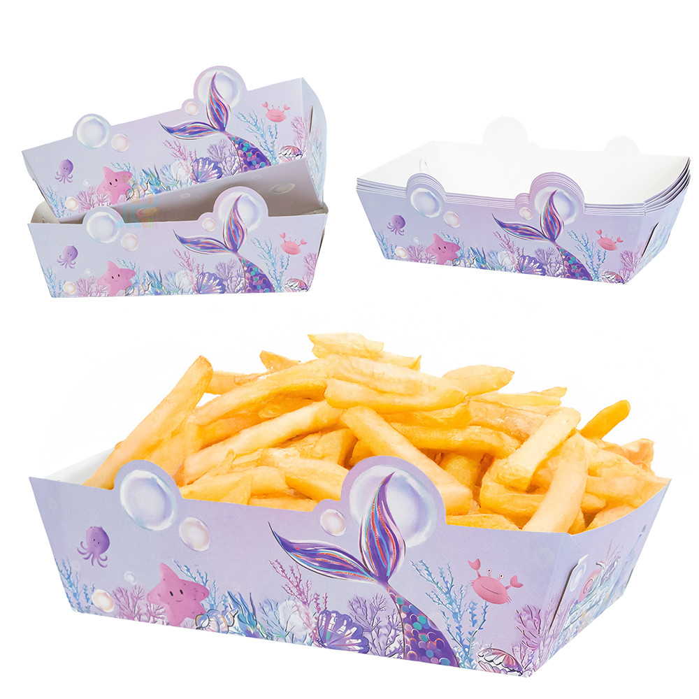 6 Pçs Roxo Sereia Cauda Bandejas De Comida Batatas Fritas Bandeja De Papel Para Crianças Menina Tema Festa De Aniversário Suprimentos Lanche Caixa
