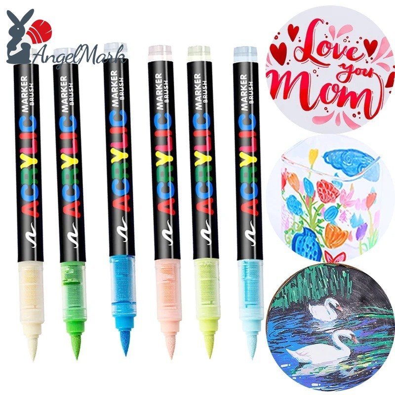 6 Pçs/set Marcadores Acrílicos Pintura Arte Ponta Macia Canetas Pincel Preto Branco Para Vidro Madeira Tecido Metal Supr