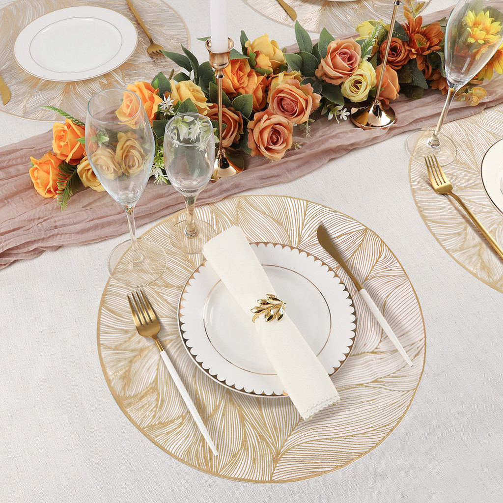 6 Peças Jogo Americano Sousplat PVC Redondo Dourado Para Mesa de Cozinha Sala de Jantar