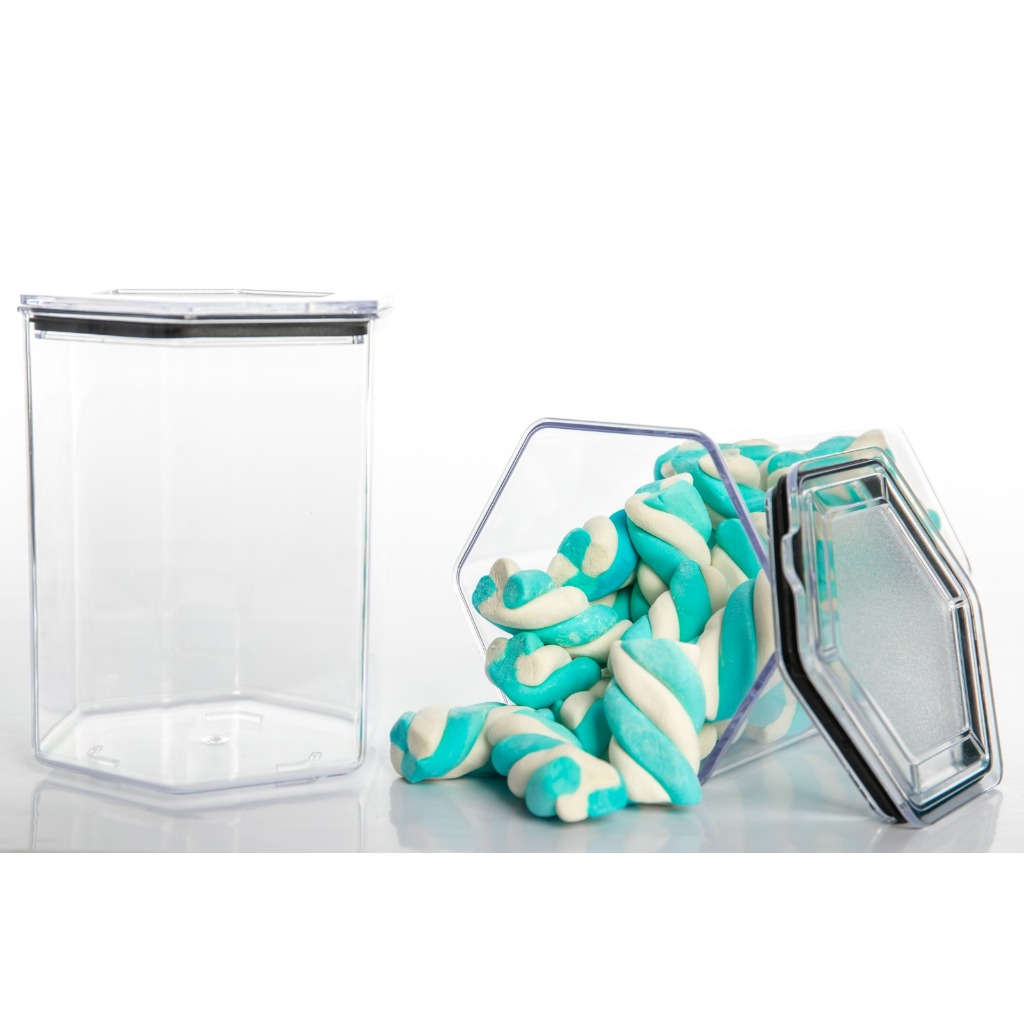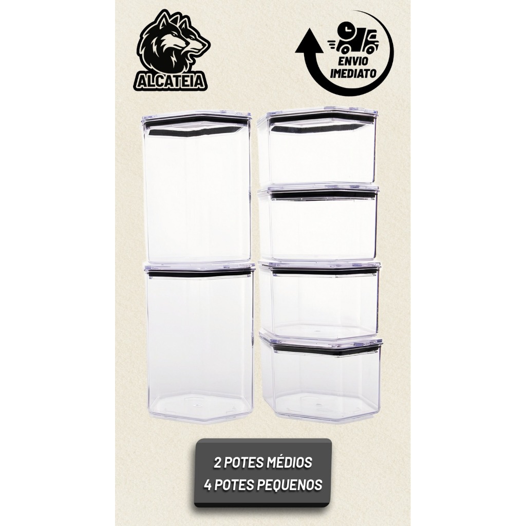 6 Potes Herméticos Acrílico Sextavado- Organizadores de Alimentos- Envio Imediato
