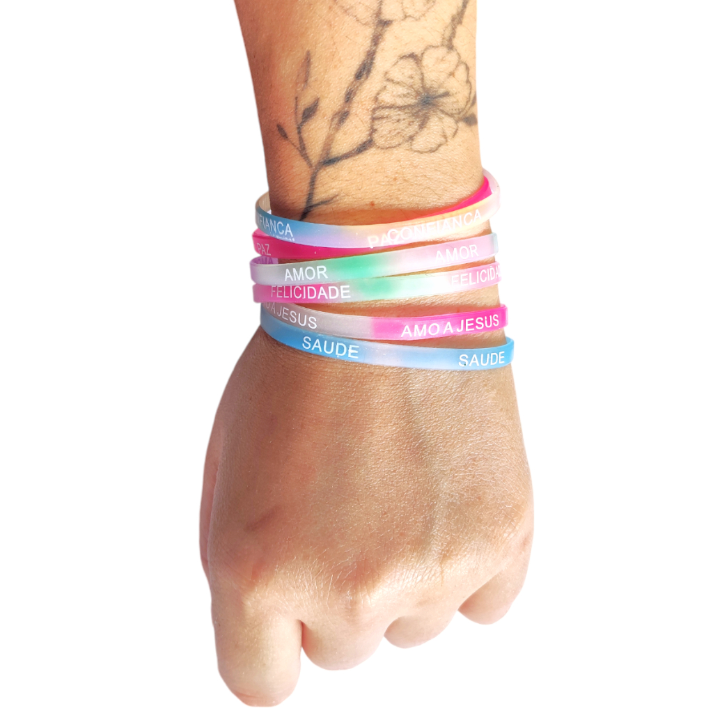 Explore o poder do amor e da motivação com nosso incrível kit de 6 pulseiras de silicone coloridas, estilo tie-dye, cada uma adornada com palavras motivacionais e de amor! Estas pulseiras não são apenas acessórios elegantes, mas também transmitem mensagens positivas que inspiram e elevam o espírito. Perfeitas como pulseiras da amizade, elas são ideais para presentear pessoas especiais em sua vida ou como lembrancinhas em festas e eventos religiosos cristãos. Imagine a alegria e o sorriso que estas pulseiras vão trazer aos seus amigos, familiares e colegas! Com tamanho único e disponíveis em várias cores deslumbrantes, estas pulseiras são versáteis e podem ser usadas em qualquer ocasião. Seja na praia, na piscina ou em um encontro casual com amigos, elas adicionam um toque de estilo e positividade ao seu visual. Com oito frases diferentes para escolher, você pode encontrar a mensagem perfeita para expressar seus sentimentos e compartilhar amor e motivação com o mundo. Não espere mais para espalhar boas energias - adquira nosso kit de pulseiras tie-dye hoje mesmo e faça a diferença na vida de quem você ama!