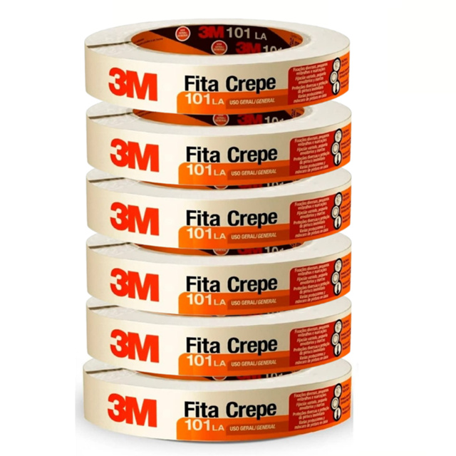 A Fita Crepe 3M 101 LA prende, veda e protege superfícies de respingos de tinta. Resistente e fácil de usar, o produto não rasga durante o uso e pode ser cortado com a mão, sem necessidade de usar tesoura. O adesivo da Fita Crepe 3M 101 LA adere instantaneamente a papéis, metais, madeiras, plásticos, vidros, áreas pintadas e outras superfícies sem descolar - inclusive em locais irregulares e cantos arredondados. No momento da remoção, o produto descola suavemente e por inteiro, sem quebrar ou danificar a superfície. A Fita 101 LA é um utensílio indispensável em todas as caixas de ferramentas, escritórios e até mesmo em casa. Versátil, ela pode ser usada para fechamento de embalagens e caixas de papelão, pendurar placas de sinalização temporárias, fazer marcações para pinturas e muitas outras utilidades. Aplicações sugeridas: - Pintura imobiliária - Leves aplicações industriais - Sela papéis, embalagens e caixas Características: - Fácil de aplicar - Remoção limpa - Linha de pintura com excelente acabamento - Resistente a água e solventes