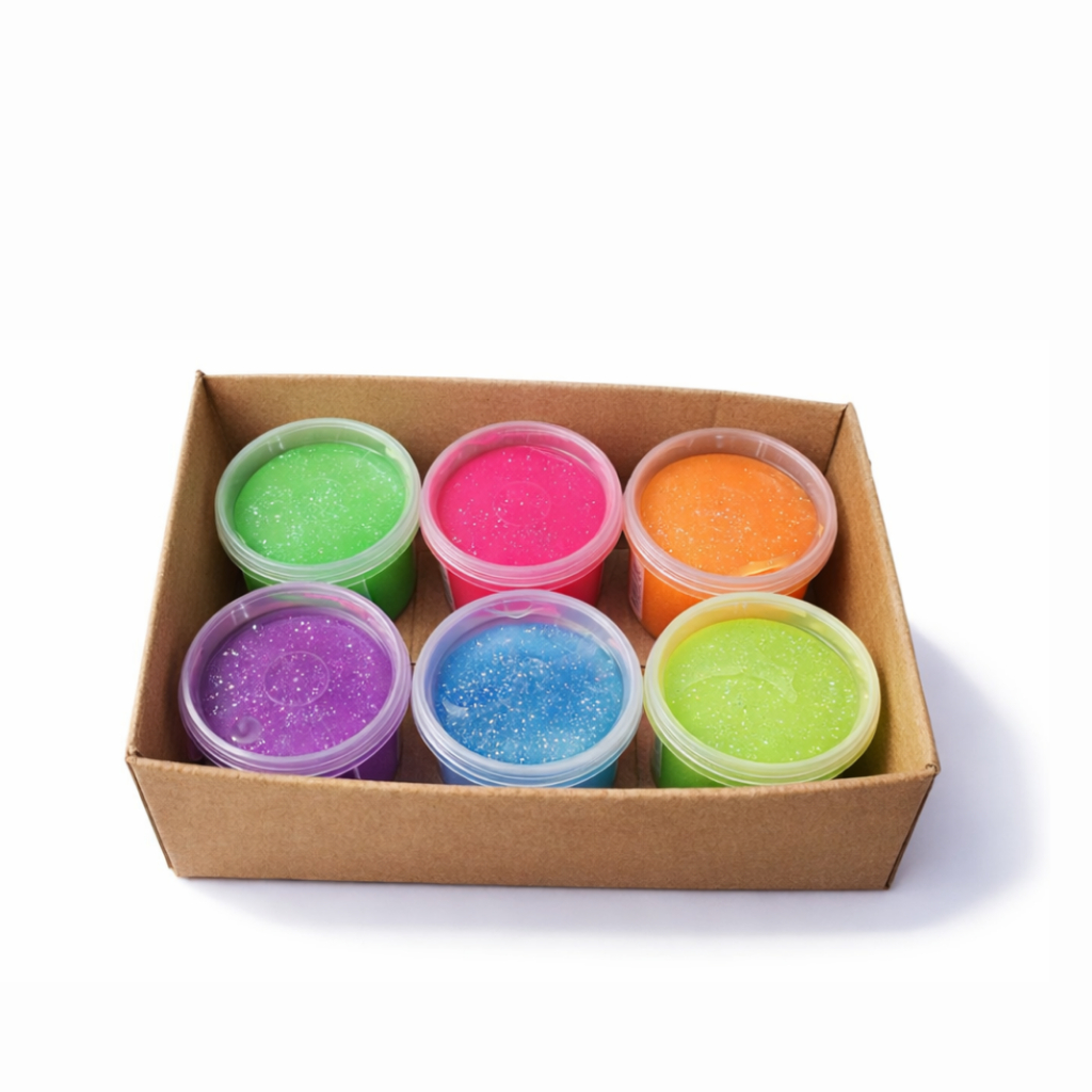 Diversão que encanta na hora! Kit com 6 slimes puxa puxa com glitter, macias, coloridas e super divertidas. Cada slime tem 185g, ideal para apertar, esticar e brincar por bastante tempo sem perder a textura. 🎉 Perfeito para festas infantis, lembrancinhas e brindes criativos 🎨 6 Cores 📦 Produto bem embalado e pronto para envio Uma lembrancinha simples, divertida e que as crianças realmente adoram!