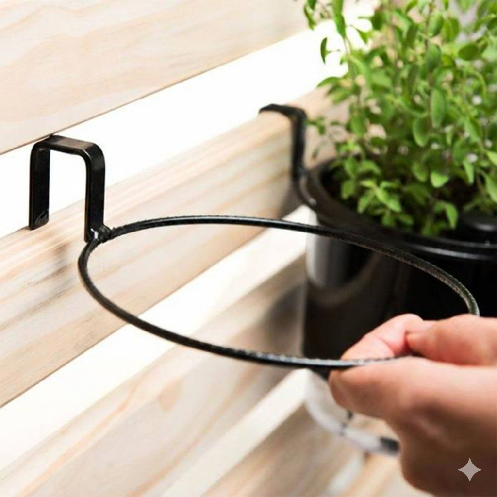 6 Suportes Anel Treliça Parede P/ Vaso Auto Irrigável 11 cm. Cor: Preta Solicite maiores quantidades.