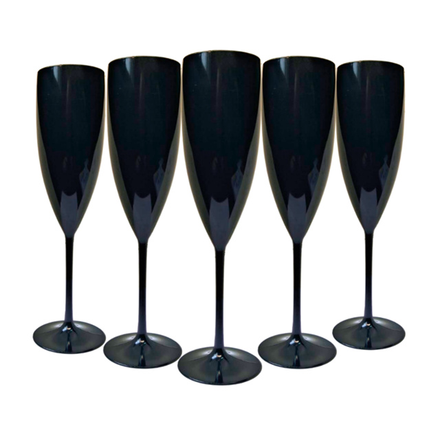 6 Taças Champanhe Acrílico Sólido Preto160ml