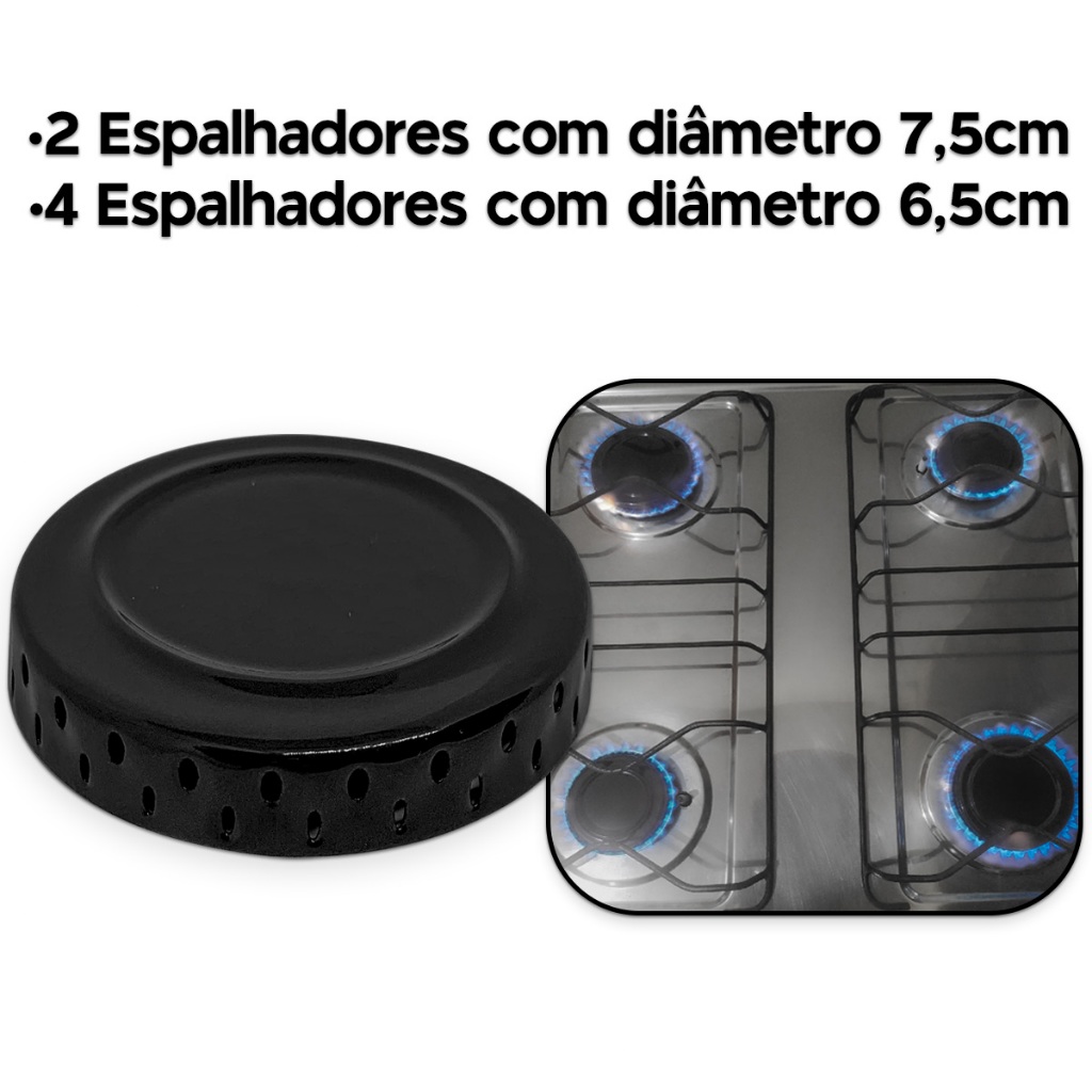 6 Tampas espalhador Boca de Fogão Atlas Mônaco tampinha, espalhador, Preto chama, peça Fogão