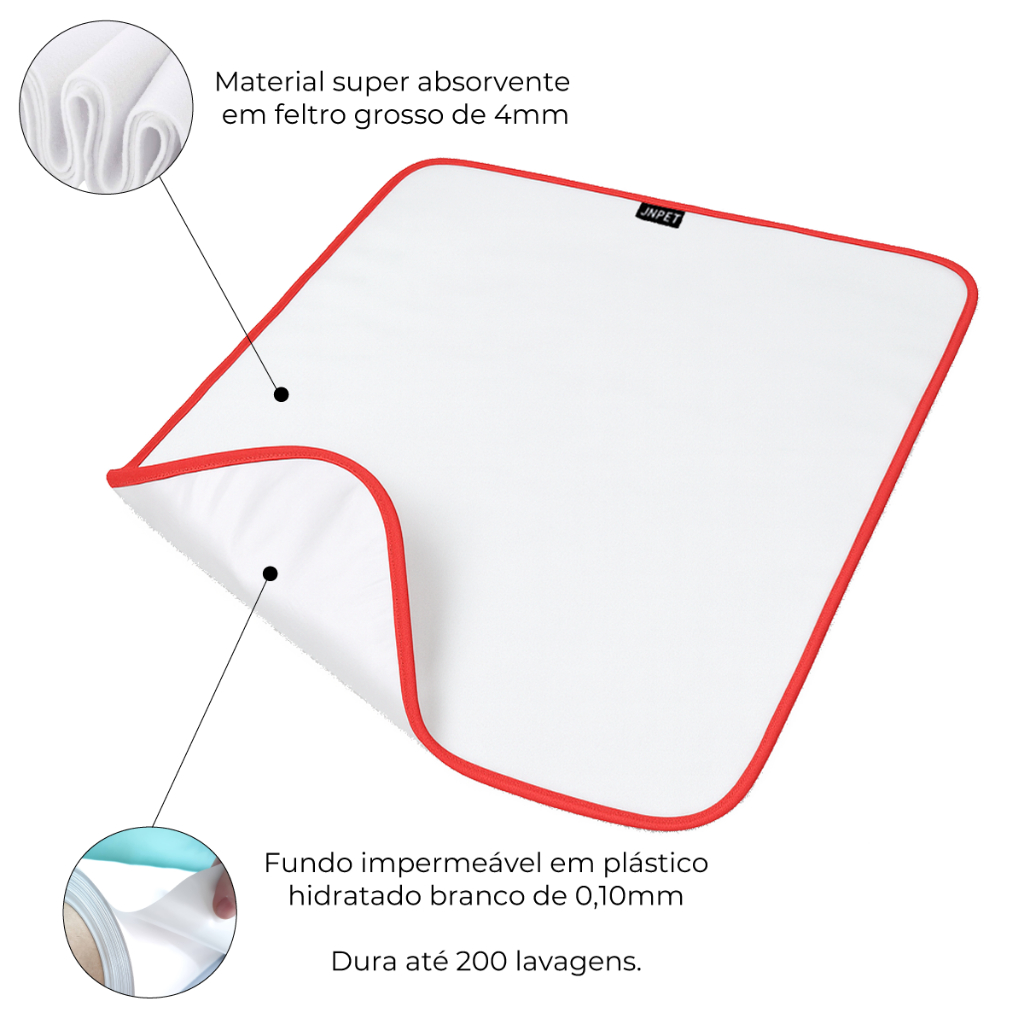 O Tapete Higiênico Lavável da JN Pet foi desenvolvido para oferecer praticidade, economia e conforto ao tutor e ao seu pet. Fabricado com uma camada absorvente eficiente e fundo impermeável, o tapete impede o vazamento de líquidos, garantindo um ambiente mais limpo e seco por mais tempo. Composto por 50% poliéster e 50% PVC, o tapete combina durabilidade e facilidade de higienização, podendo ser reutilizado, o que o torna uma alternativa sustentável e econômica em comparação aos tapetes descartáveis. Seu uso contínuo contribui para a redução de resíduos e o cuidado com o meio ambiente. A higienização deve ser feita manualmente, com água, sabão, evitando o uso de máquina de lavar ou escova na parte branca para preservar a integridade do produto. ============================== Medidas Tamanho PP Comprimento 45 cm Largura: 45 cm Indicado para cães de até 5 kg . Tamanho P Comprimento 70 cm Largura: 50 cm Indicado para cães de até 10 kg . Tamanho M Comprimento 80 cm Largura: 60 cm Indicado para cães de até 20 kg . Tamanho G Comprimento 90 cm Largura: 70 cm Indicado para cães de até 40 kg ============================== Modo de Higienização Mergulhe o tapete em um balde com água e sabão. Esfregue enxague até toda a urina ser removida. Remova o excesso de água e coloque para secar. ! A lavagem em máquina de lavar diminui a vida útil do produto. ! Não esfregue a parte branca com escova ============================== Especificações Marca: JN Pet Modelo: Tapete higiênico lavável Camadas de absorção: 1 Fundo impermeável: Sim Composição: 50% Poliéster / 50% PVC - Quantidade Média de lavagens: 200