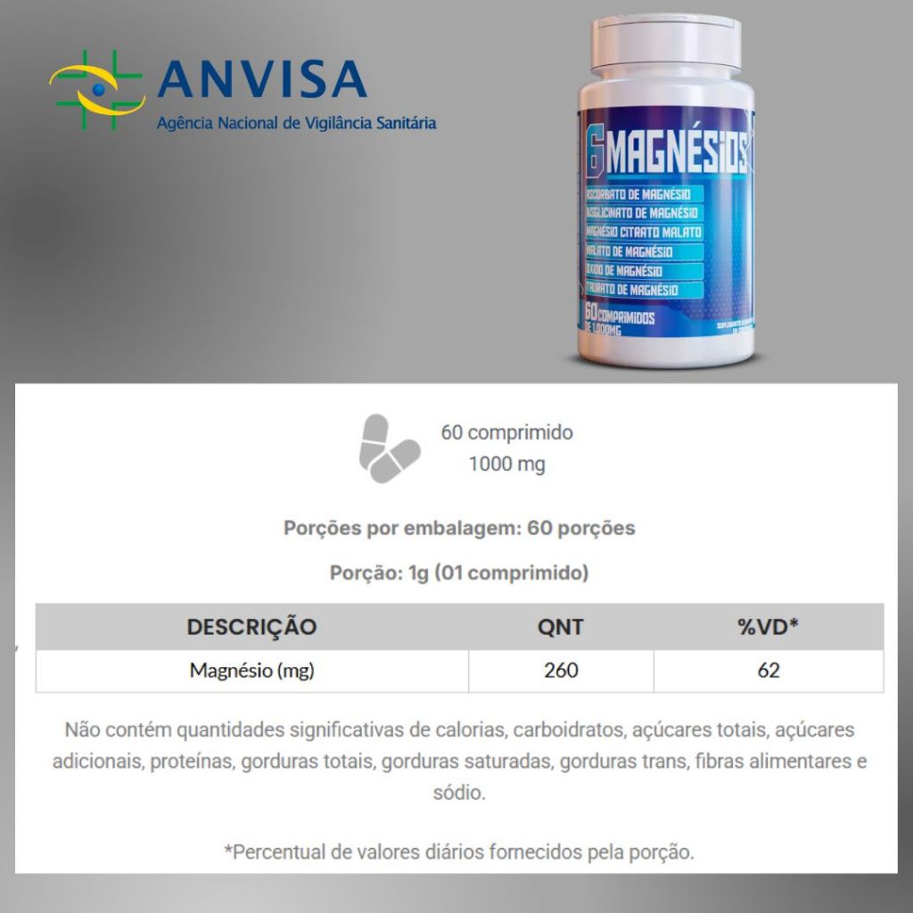 6 Tipos de Magnésio em um pote - 60 Comprimidos com 1000mg - Natuforme Premium