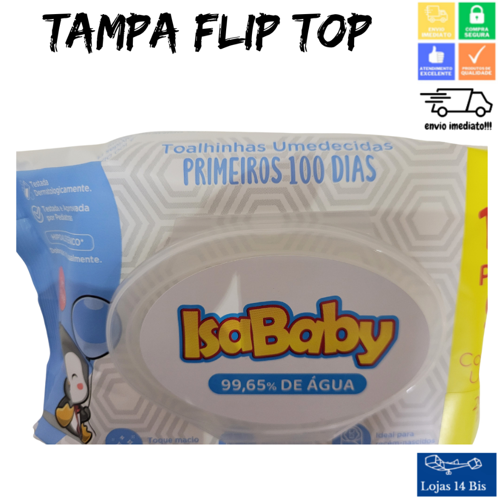 6 Toalhas Umedecidas Lenço Isababy 100 Primeiros Dias c/100 Recém Nascidos Tampa Flip Top