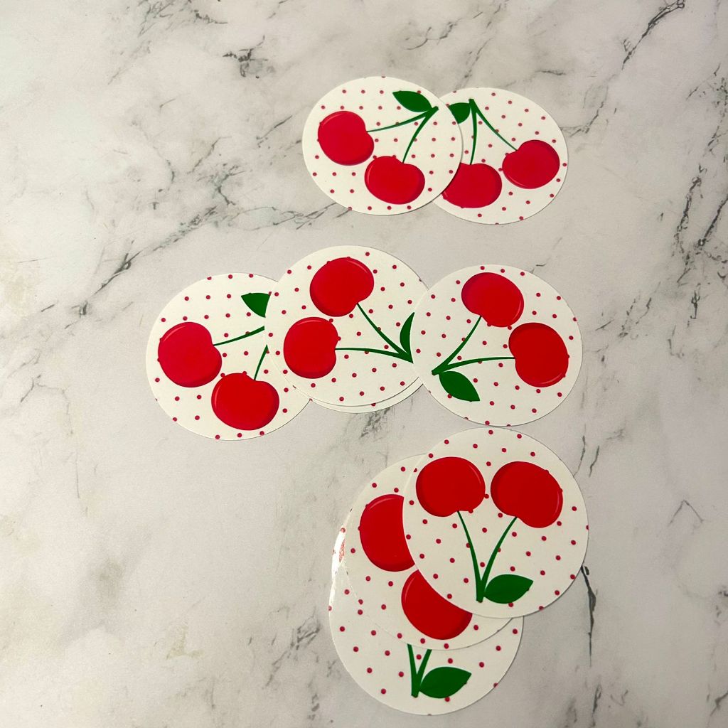 60 ADESIVOS 5X5 TEMA CEREJINHA PARA LEMBRANCINHAS