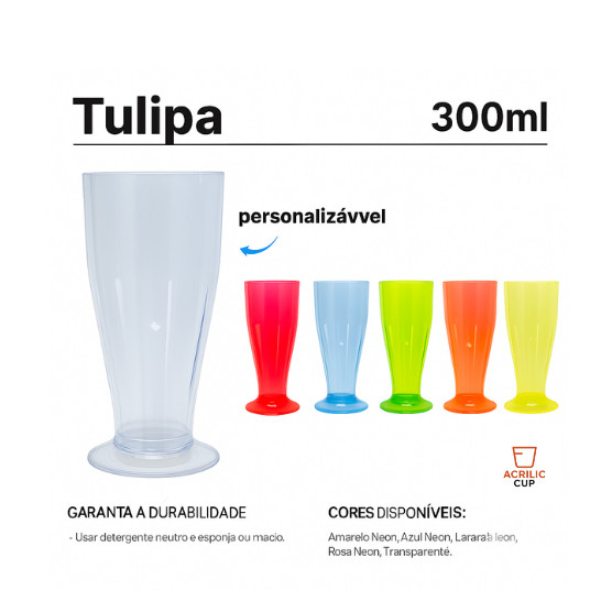 60 Copo Tulipa P/ Chopp Cerveja ACRÍLICO 300 Mls