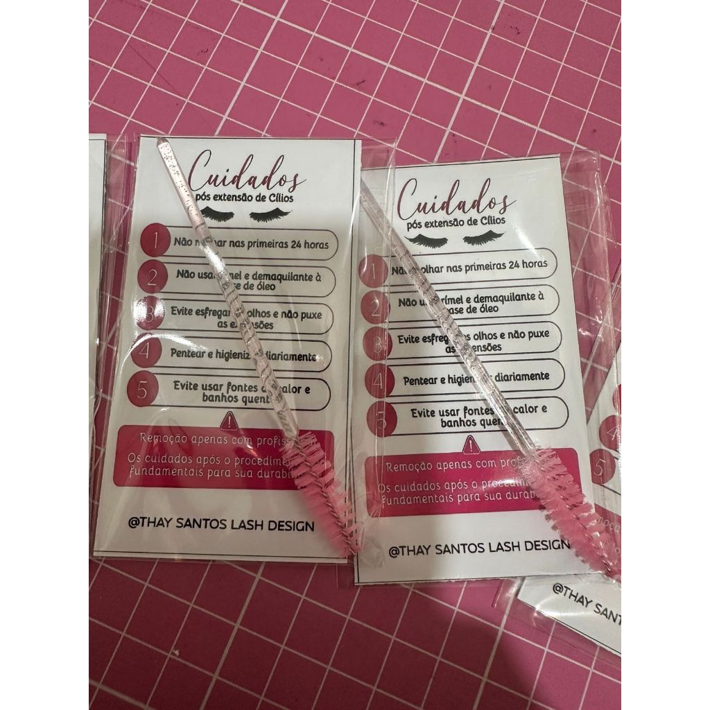 ✨ Encante seus clientes com este mimo lindo e apaixonante. Este produto contém: 60 ESCOVINHA de CILIOS na cor Rosa. Perfeito para cuidar dos seus cílios com estilo e delicadeza. Cartão de agradecimento ao cliente. Feito de papel grosso, com impressão de excelente qualidade. Agradecer nunca foi tão elegante. Este conjunto é ideal para clientes que valorizam cuidados pessoais e um toque especial. Aproveite para surpreender e manter seus clientes felizes. 🌟 CONTÉM: - ESCOVINHA DE CILIOS na cor Rosa. - Cartões de agradecimento ao cliente(Tag em papel grosso, com impressão de excelente qualidade). - Saquinho plástico transparente(Já vai tudo pronto e embalado individualmente). - Tamanho: 9cm x 5cm (aproximadamente)