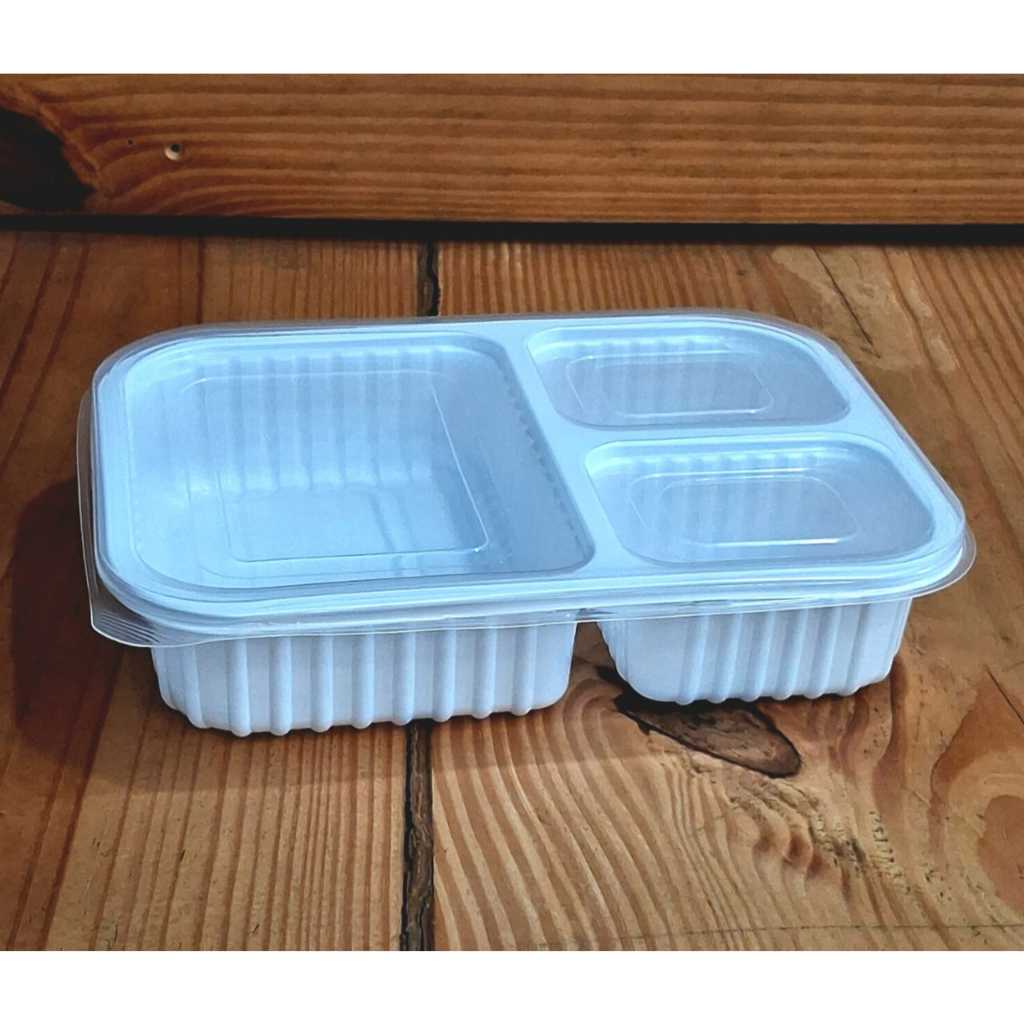 60 Marmitas 900ml 3 Divisórias c/Tampa para Delivery Freezer e Microondas Reutilizável