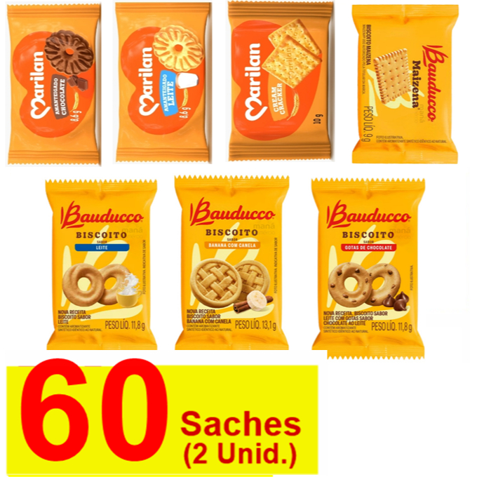 Olá, Somos a BiscoitoMix, empresa especializada na distribuição de Biscoitos, Wafers, Cookies e muito mais!!! **** ATENÇÃO: LEIA ATENTAMENTE O ANUNCIO!!! TRATA-SE DE KIT FORMADO POR DUAS MARCAS DE BISCOITOS BAUDUCCO E MARILAN!!! VERIFIQUE A DESCRIÇÃO NAS VARIAÇÕES!!! **** 60 Saches de Biscoitos Amanteigados Sabores Mistos MARILAN E BAUDUCCO Sabores no Kit Aprox.: Variação 1: Marilan Chocolate Marilan Cream Cracker Marilan Leite Bauducco Cereale Cacau Variação 2: Bauducco Cerale Bauducco Banana Bauducco Gotas de Chocolate Bauducco Maizena Bauducco Cream Cracker Variação 3: Marilan Chocolate Marilan Leite Bauducco Cereale Cacau Variação 4: Bauducco Banana Bauducco Cereale Bauducco Gotas de Chocolate Variação 5: Marialan Leite Marilan Chocolate Marilan Cream Cracker Variação 6: Bauducco Banana Variação 7: Bauducco Cereale Bauducco Banana Bauducco Maizena Variação 8: Bauducco Cereale Cacau Variação 9: Bauducco Cereale Bauducco Cream Cracker Variação 10: Marialan Chocolate Variação 11: Marialan Leite Variação 12: Marialan Pit Stop (COM 2 BISCOITOS EM CADA SACHÊ). ATENÇÃO : TODAS AS INFORMAÇÕES REFERENTE AO PRODUTO COMO QUANTIDADE, TAMANHO DOS BISCOITOS, EMBALAGEM, ETC ESTÃO DESCRITAS ABAIXO,É IMPORTANTE QUE LEIA TODO O ANÚNCIO OU ENTRE EM CONTATO CONOSCO ATRAVÉS DO CHAT PARA QUALQUER DÚVIDA. OBRIGADO! ** Em caso de falta de algum sabor de biscoitos, os sabores ausentes serão substituídos pelos disponíveis. Garantimos assim uma experiencia variada e satisfatória para nossos clientes. VALIDADE - 8 MESES O Biscoito em Saches da Bauducco e Marilan são a opção perfeita para quem ama um snack doce e saboroso. Com embalagem prática e individual de 8,6g, ele é ideal para lanches rápidos, escolas, viagens e eventos, salas de espera, cestas de café da manhã, lembrancinhas para aniversário, proporcionando uma deliciosa experiência a qualquer hora do dia. Benefícios: Praticidade: Embalagens individuais, fáceis de transportar e perfeitas para lanches rápidos. Higiene: Cada porção vem em um sachê selado, garantindo a qualidade e frescor do produto. Versatilidade: Ótimo para consumo em casa, no trabalho, em escolas ou durante viagens. Qualidade: Produzido pela Bauducco e Marilan, marca reconhecida pela excelência em biscoitos. Sobre o envio: Postamos seu pedido em até 24 horas após a confirmação de pagamento. Envio para todo Brasil. Explore a nossa linha completa de biscoitos e snacks para encontrar opções deliciosas para cada momento do dia. Aproveite o sabor irresistível dos Biscoitos em Saches da Bauducco e Marilan em porções práticas e individuais para o seu dia a dia. ATENÇÃO: A QUANTIDADE DE CADA SABOR NO KIT É CALCULADA ATRAVÉS DO PESO E NÃO POR CONTAGEM UNITÁRIA, PODENDO VARIAR PARA MAIS OU PARA MENOS A QUANTIDADE DE CADA SABOR NO KIT. Perfeitos para serem degustados no café da manhã, no lanche da escola, clínicas, consultórios, coffe breaks, salões de beleza e salas de espera. Dúvidas Fale Conosco!!! Nossa Equipe terá o prazer de responder Imediatamente!!! - Atendimento Personalizado - Postagem Imediata - Emitimos NF