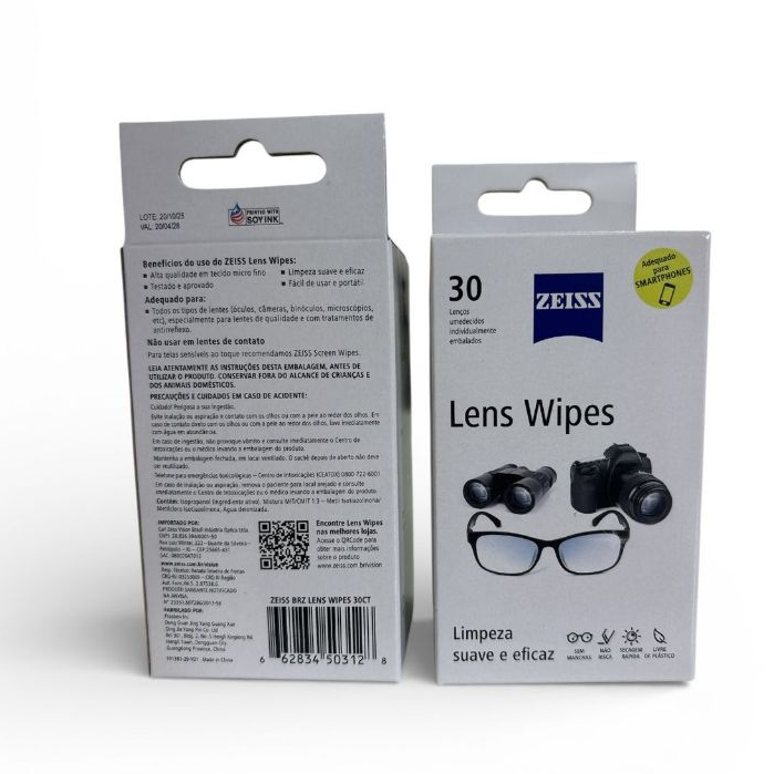 60 Lenços Umedecidos para Limpeza de Lentes – Zeiss + Acompanha um Cordão de óculos Mantenha suas lentes sempre limpas com os Lens Wipes Zeiss, ideais para limpar óculos de grau, óculos de sol, celulares, tablets e telas sem riscar. - Limpeza rápida e eficiente - Não risca as lentes - Não deixa manchas ou resíduos - Embalagem individual – prático para levar no bolso ou na bolsa - Qualidade original Zeiss Perfeito para quem quer praticidade no dia a dia e visão sempre limpa. Produto original Envio rápido Garanta já o seu e tenha lentes sempre limpas em qualquer lugar!