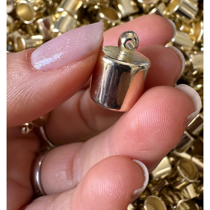 Terminal ponteira em ABS PARA FINALIZAR COLARES E OUTROS ARTESANATOS Tam: 10mm externo * 8mm interno Quantidade: 60pç CORES: PRATA DOURDADA